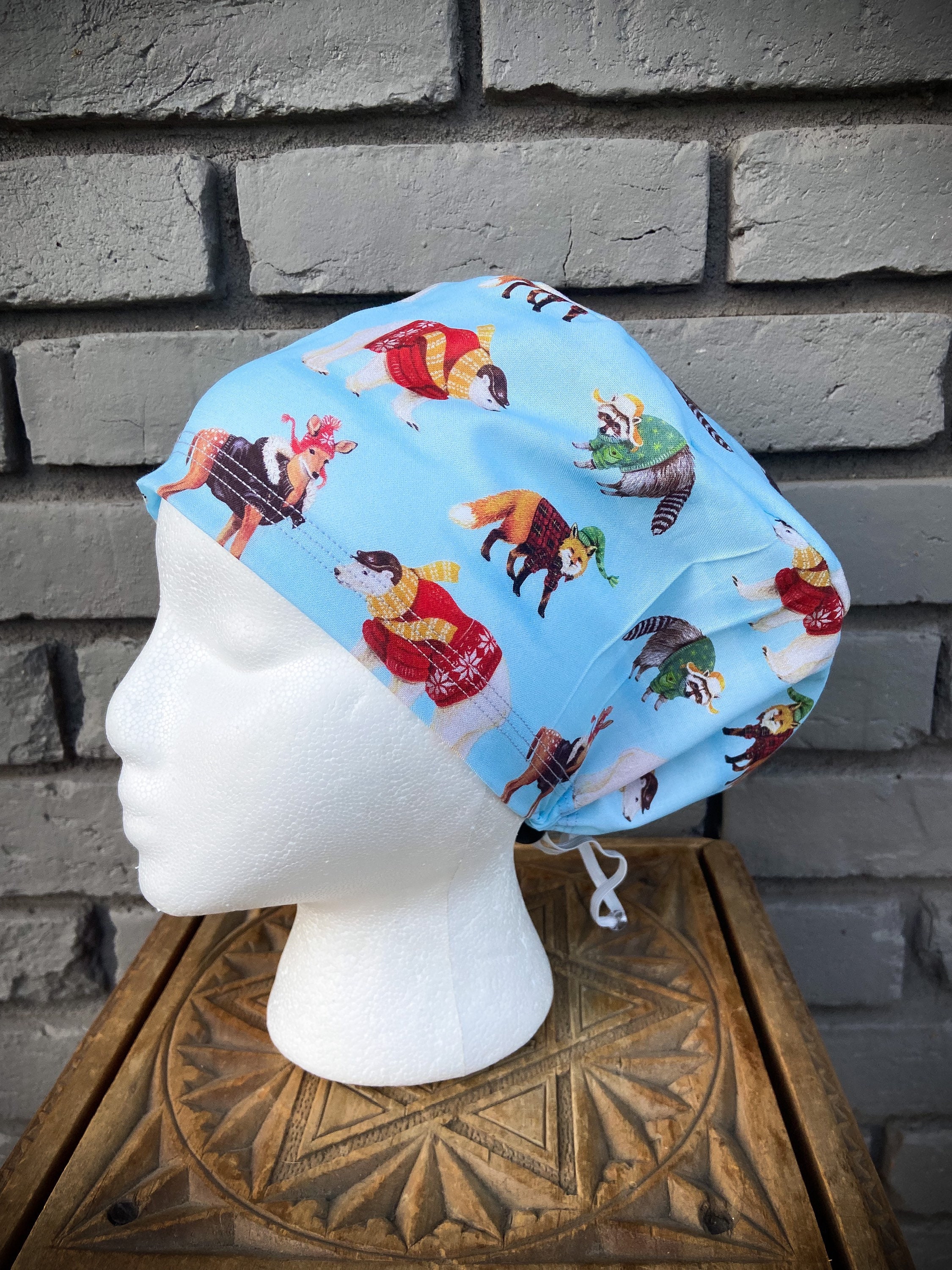 All scrub caps are handmade. All seams are reinforced and serged. Each hat is made with elastic and toggle. The toggle is simple to adjust and provides comfortable hat securement with little to no adjustments needed throughout your busy day. Caps fit most head sizes (17in-28in in circumference).